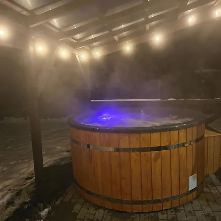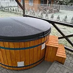 Het interieur heeft een kastje en uitzicht op de tuin. Domki Jastrzebia Na Mazurach villa beschikt over een badkamer met een apart toilet en een douche. Er zijn ook een haardroger voor uw comfort.